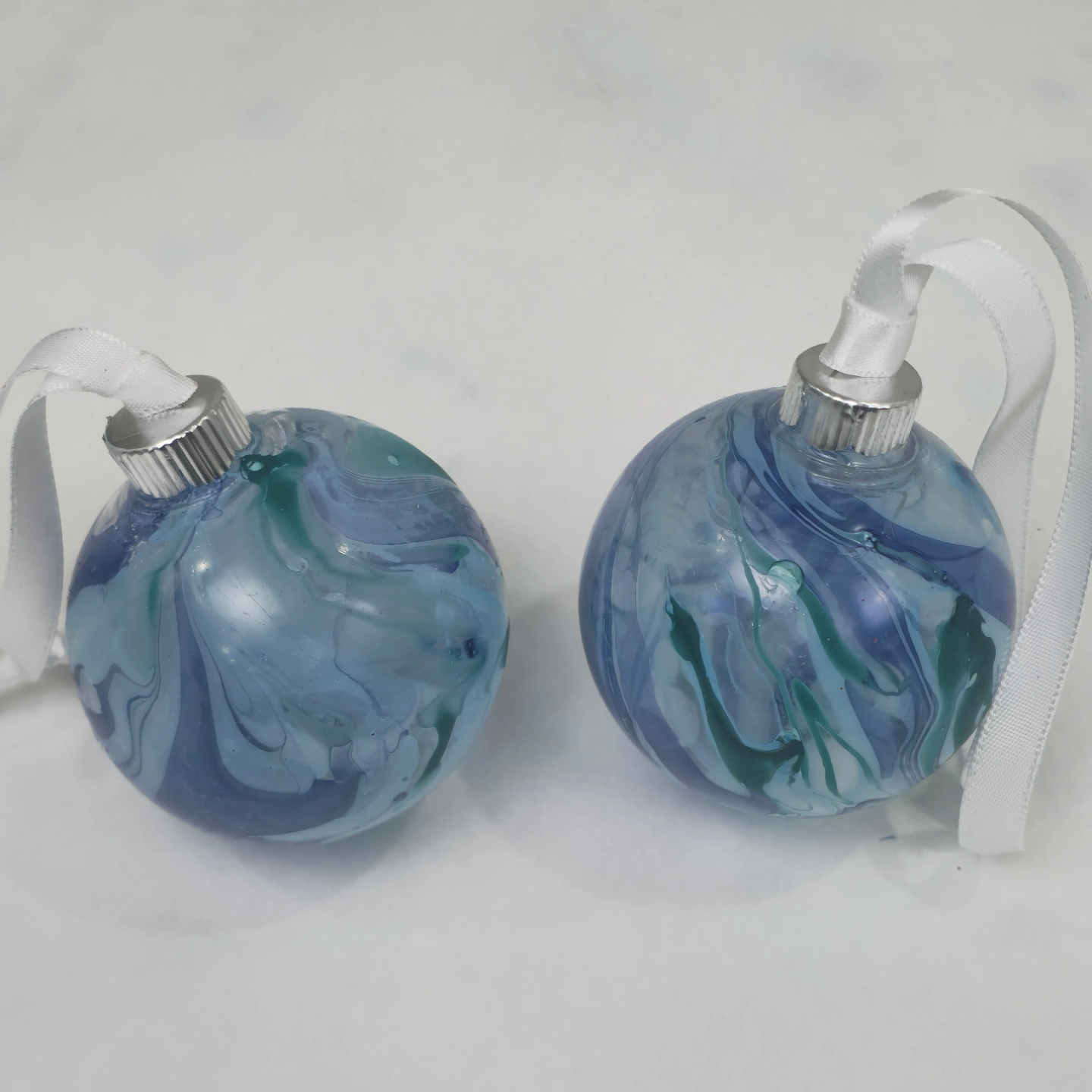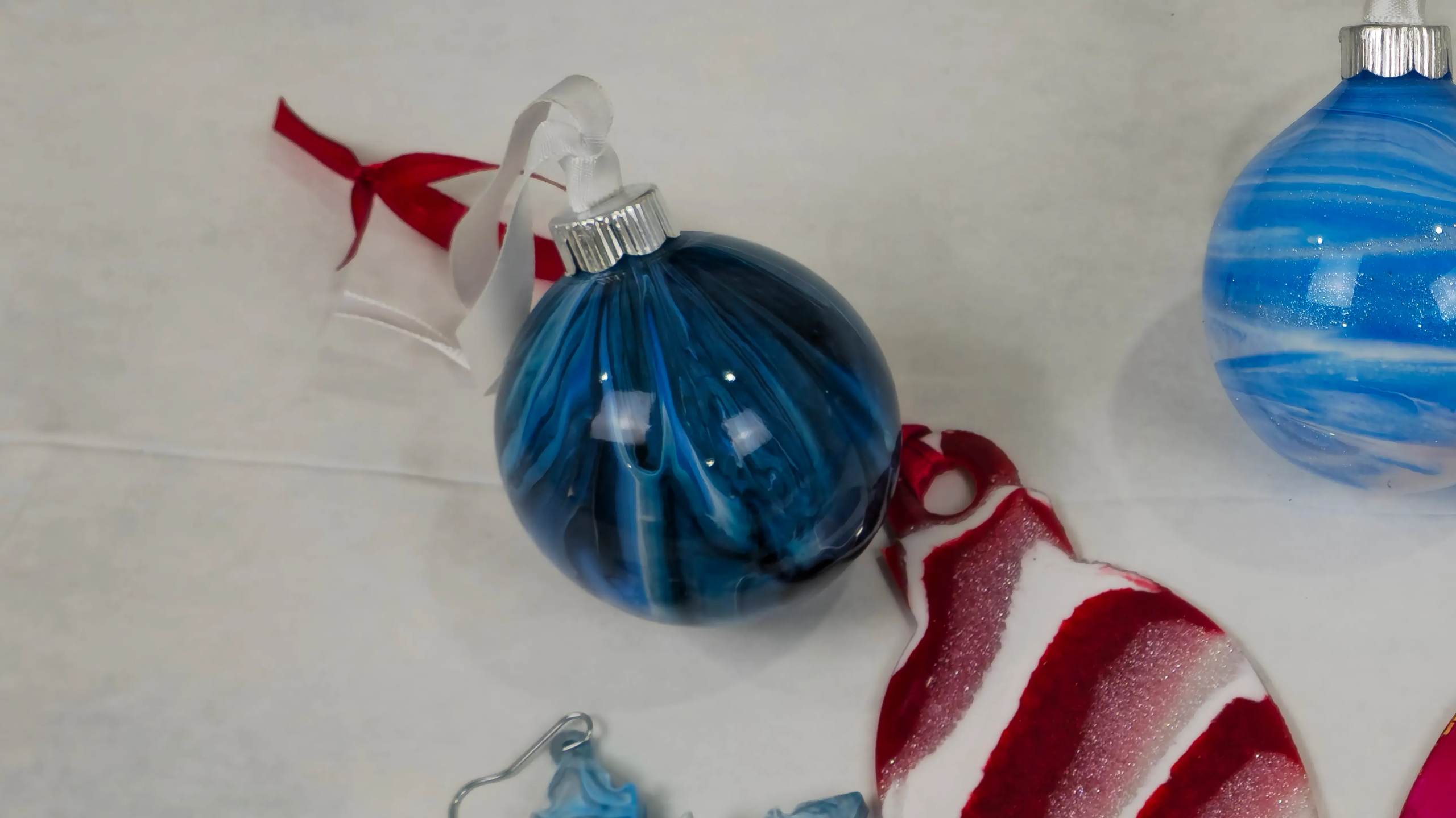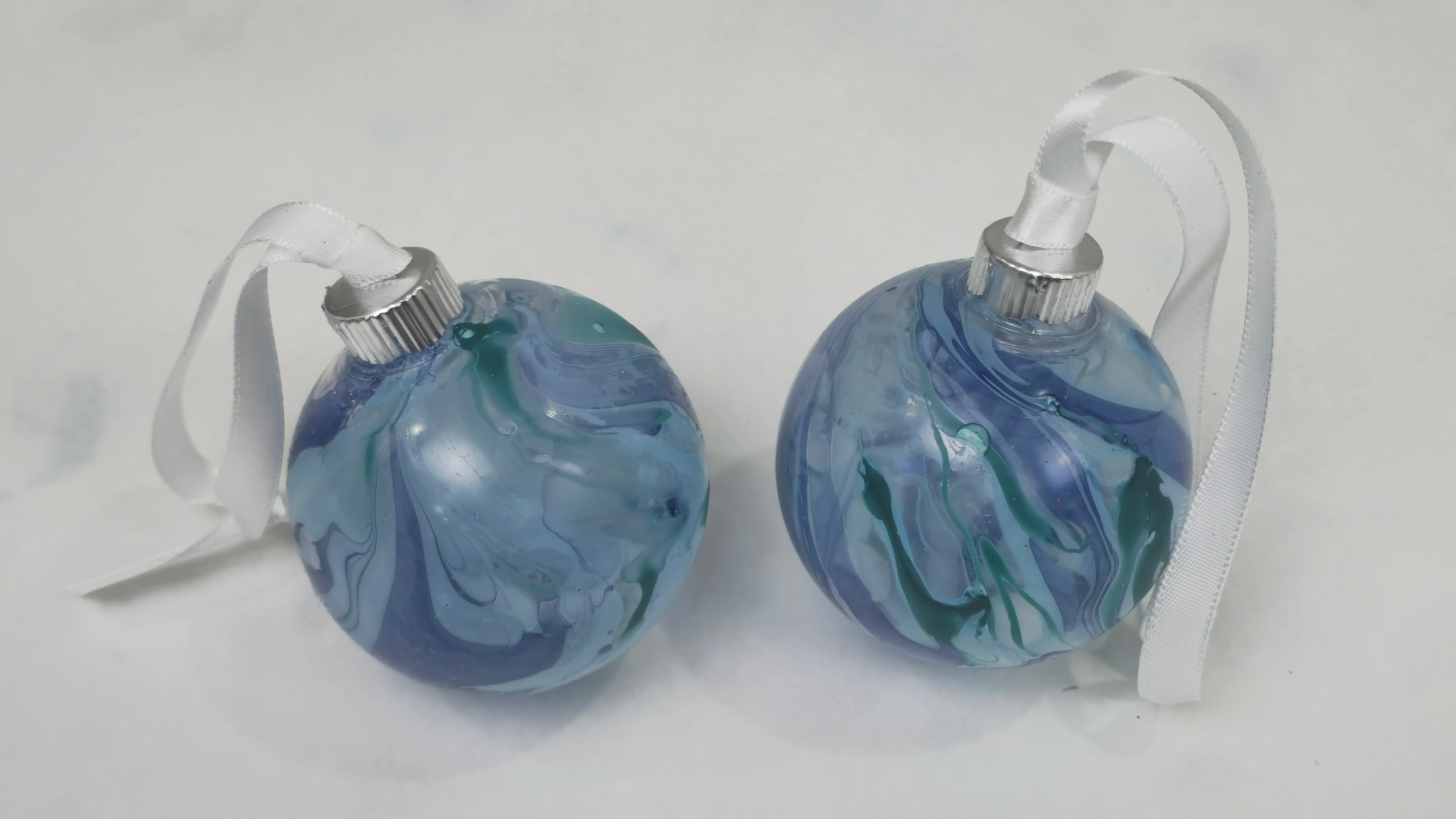 "I had no idea making ornaments could be this fun! The acrylic pour bulbs turned out beautiful."