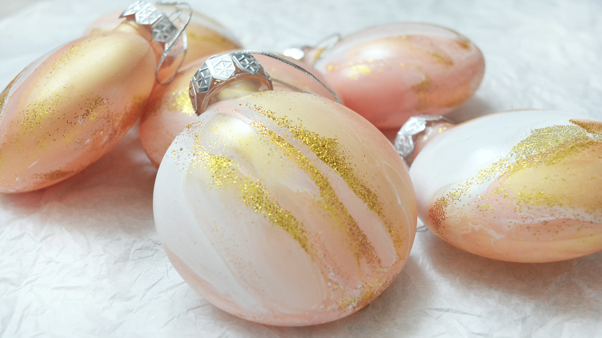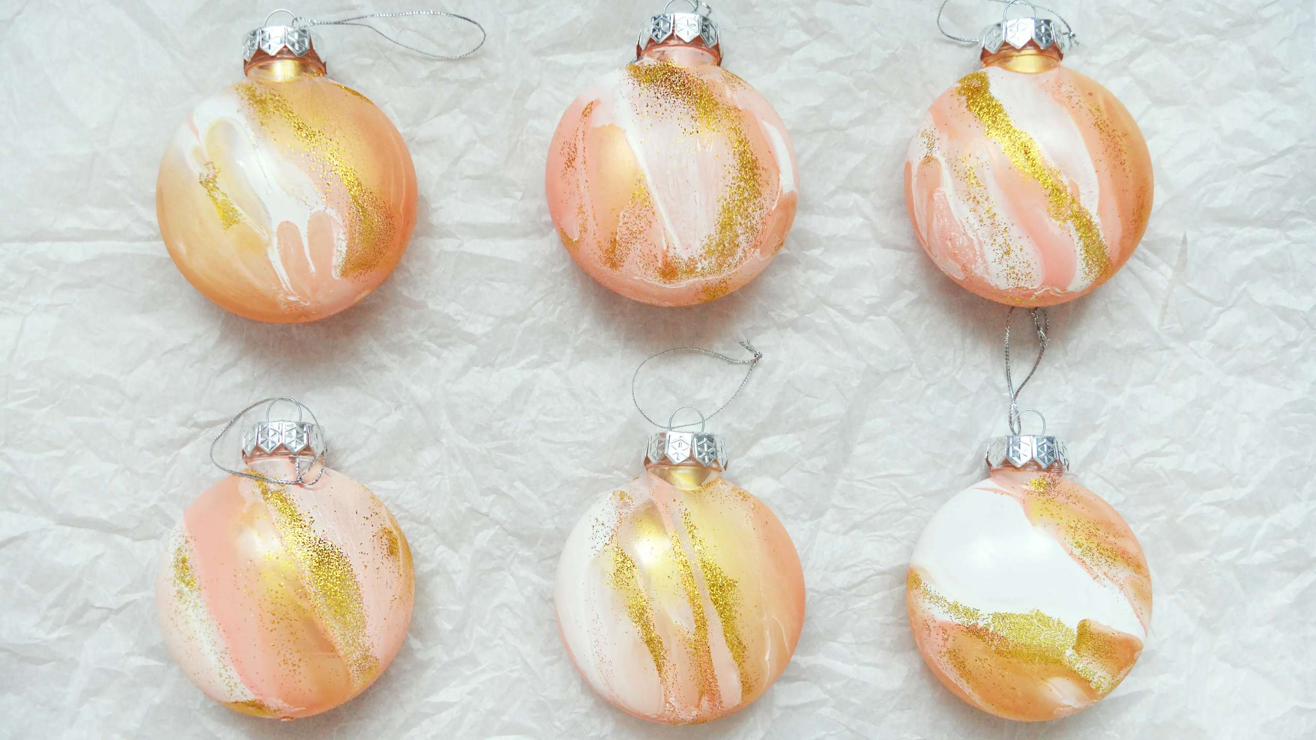 Discover how to dip ornaments into swirling paint patterns for magical, marbled results.