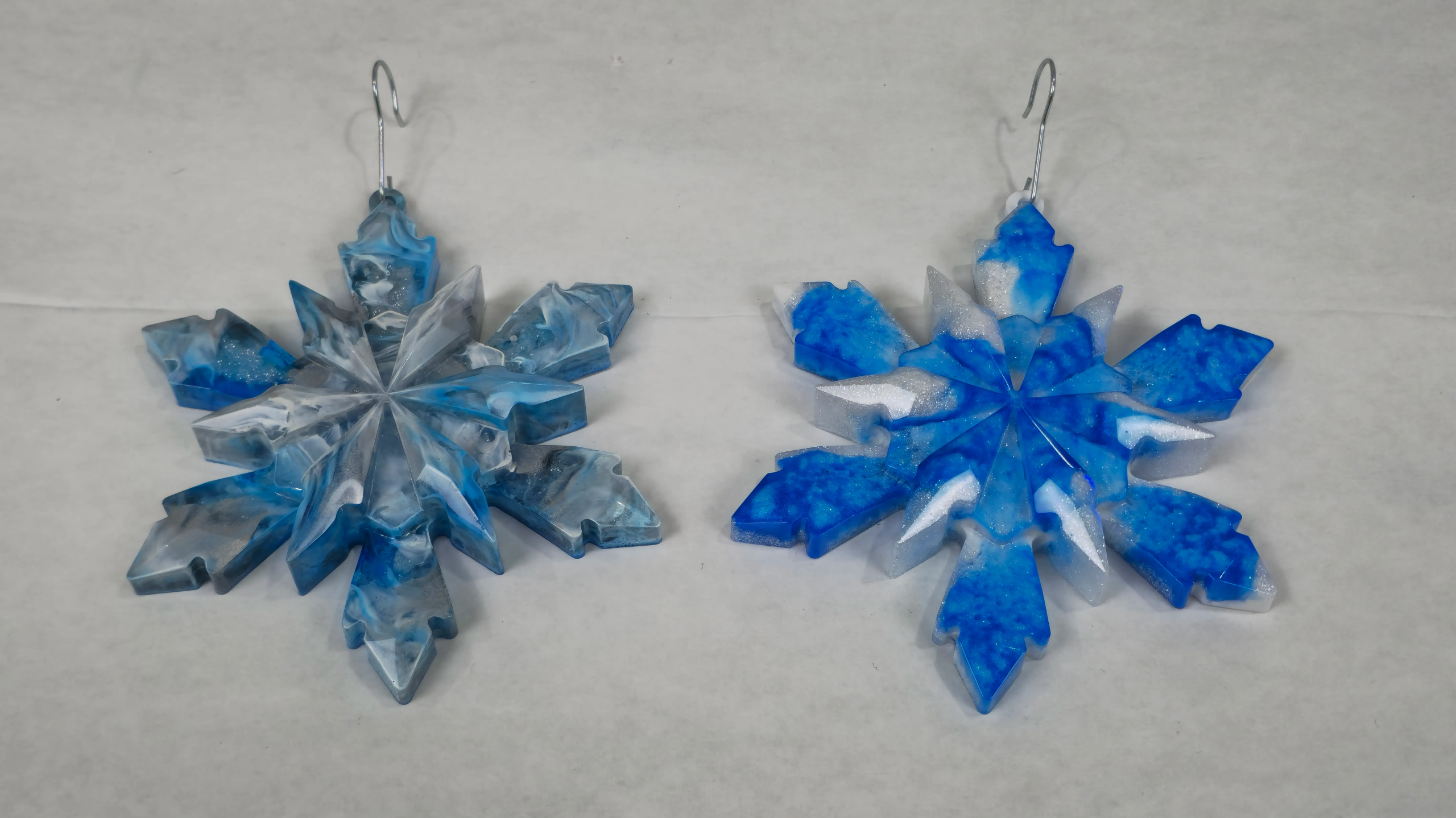 Learn to pour resin into ornament molds to create custom shapes with layered color and sparkle.